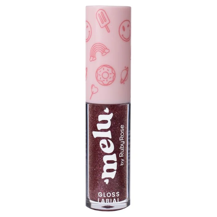 Lip gloss. Ruby Rose Melu Brilhante possui efeito molhado, proporcionando aos lábios brilho intenso com partículas de glitter.